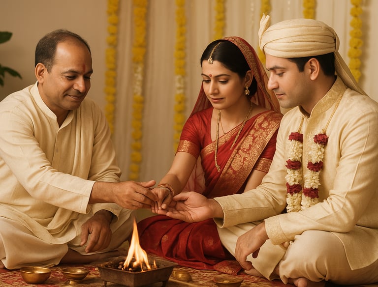 Arya Samaj Marriage is a simple, traditional Hindu wedding ceremony performed as per Vedic mantras and Arya Samaj rituals. It is legally valid under the Hindu Marriage Act.