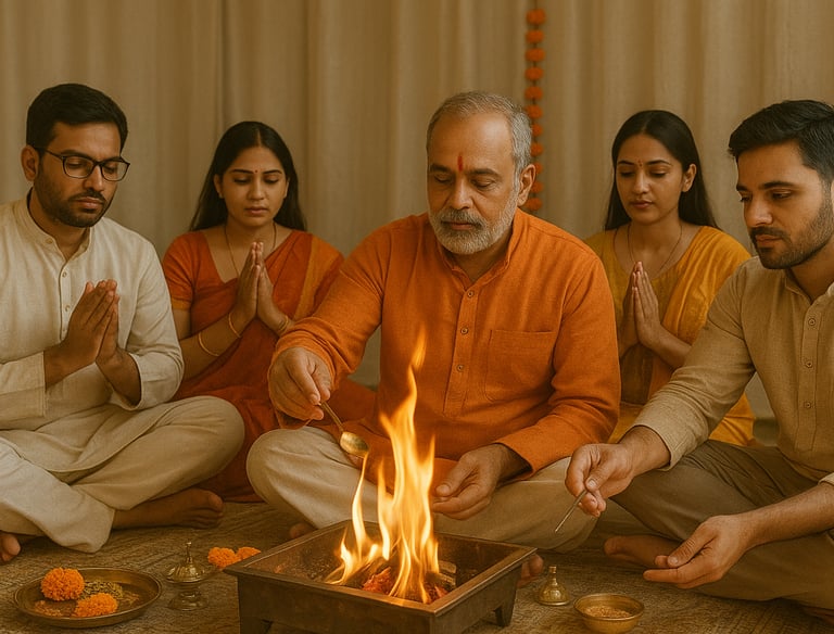 Experienced Arya Samaj Pandit Ji performing sacred Arya Samaj marriages, Vedic havans, pujas, and all traditional rituals with devotion.